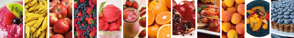 Apples, Apricots, Bananas, Berries, Cherries, Citrus, Figs, Grapefruit, Grapes, Guava Fruit, Kiwi, Mangos, Melons, Papayas, Peaches, Pears, Persimmons, Pineapples, Plums, Pomegranates, Tangerines, Tomatoes, etc.
