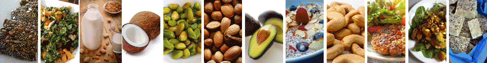 Almonds, Avocados, Brazil Nuts, Cashews, Chia Seeds, Coconuts, Flax Seeds, Hemp Seeds, Hazelnuts, Macadamia Nuts, Olives, Peanuts, Pecans, Pine Nuts, Pistachios, Pumpkin Seeds, Sesame Seeds, Sunflower Seeds, Walnuts, etc.